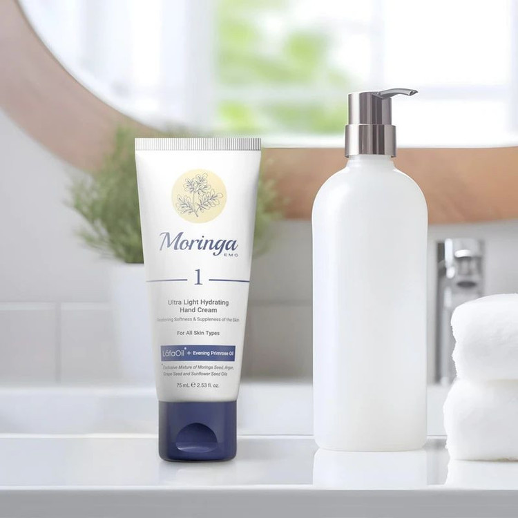 کرم دست فوق سبک و آبرسان مورینگا اِمو مدل 1 انواع پوست تیوبی 75 میلیلیتر