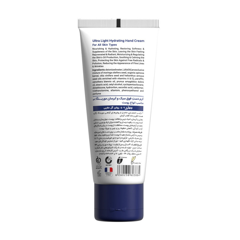 + موارد بیشتراین کرم بهواسطه دارا بودن ترکیب انحصاری LáfaOil دارای عملکردی کامل و همه جانبه است. کرم آبرسان دست در عین حال حاوی روغن گل مغربی است که آبرسان و مغذی بوده و نرمی، لطافت و جوانی پوست دست شما را تضمین میکند. با استفاده از این محصول، از پوست دستتان محافظت نیز میکنید. محو شدن علائم خشکی و جوان و شفافتر شدن پوست دست، از خواص دیگر این کرم است